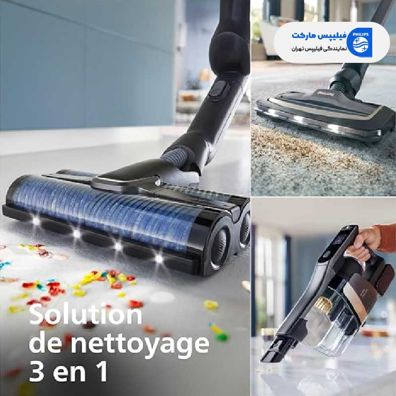 اگر فرزند کوچک دارید و یا صاحب حیوان خانگی هستید، جای جارو شارژی فیلیپس سری 9000 مدل XW9463/11 در خانه شما خلی است. این جاروی شارژی یک دستگاه چند منظوره و پیشرفته 3 در 1 از برند محبوب philips بوده که با ترکیب عملکردهای جاروکشی و زمین شویی می توانید بدون نیاز به وسیله تمیزکاری دیگر و به یک باره، گرد و غبار، کثیفی، لکه ها، مایعات کثیف و باکتری ها را از روی سطوح پاک کرده و همه جا را برق بیندازد.