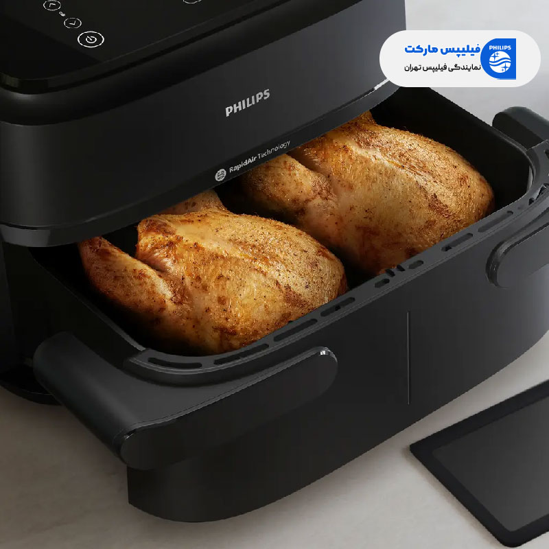 سرخ کن philips با بهره گیری از طراحی منحصر به فرد و سبد کشویی منعطف، امکان پخت یک غذای در حجم و ابعاد بزرگ یا همزمان دو غذای متفاوت را فراهم کرده و با ترکیب سرعت و کیفیت پخت، تردی و خوشمزگی را در بالاترین سطح ممکن ارائه می دهد. قابلیت گرم کردن مجدد یکی از ویژگی های مهم این محصول بوده که در عرض چند دقیقه و بدون نیاز به مایکروویو، غذایی که از ناهار ظهرتان مانده را گرم می کند.