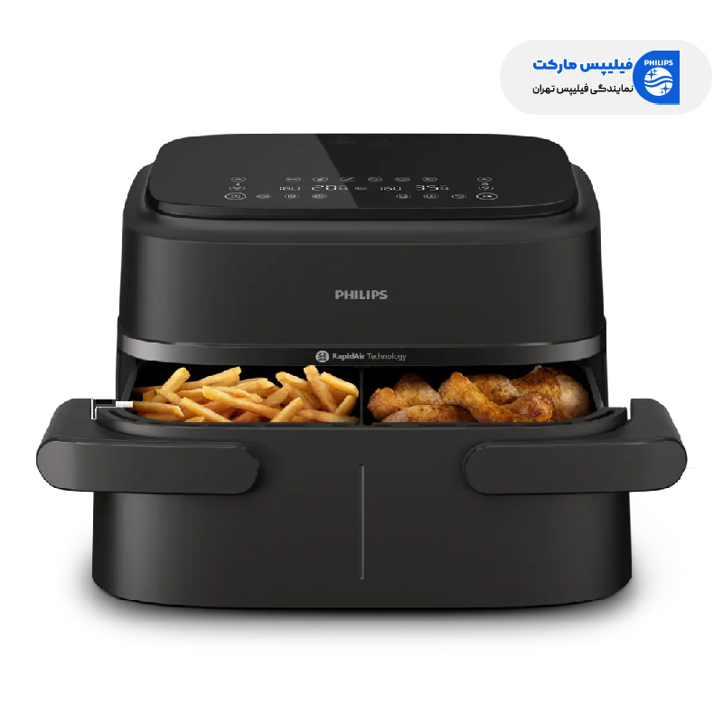 از آنجایی که این سرخ کن دارای دو محفظه پخت بوده می توان درون هر محفظه مواد غذایی یکسان یا متفاوت را قرار داده و آماده کرد. شما می توانید زمان های پخت را به طور خودکار در 2 کشو همگام سازی کنید تا هر دو غذای شما با هم آماده سرو شوند. هنگام آشپزی با این سرخ کن دو سبدی فیلیپس در مقایسه با فر سنتی، تا 40٪ سریع تر بپزید و تا 75٪ در مصرف انرژی صرفه جویی کنید. سیستم خاموش شدن خودکار ایمنی دستگاه را افزایش داده و همچنین احتمال سوختن را به شدت کاهش می دهد.